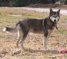 Rocky, besides being extremely well built (to our standards), has all of the other qualities we seek in a sled dog. His Mom (Falcon) ran lead for us almost up until the day she passed on. She was one remarkable dog. His Dad (Jello) at the age of 8 ½, although not as fast as he used to be, is still a main string leader.